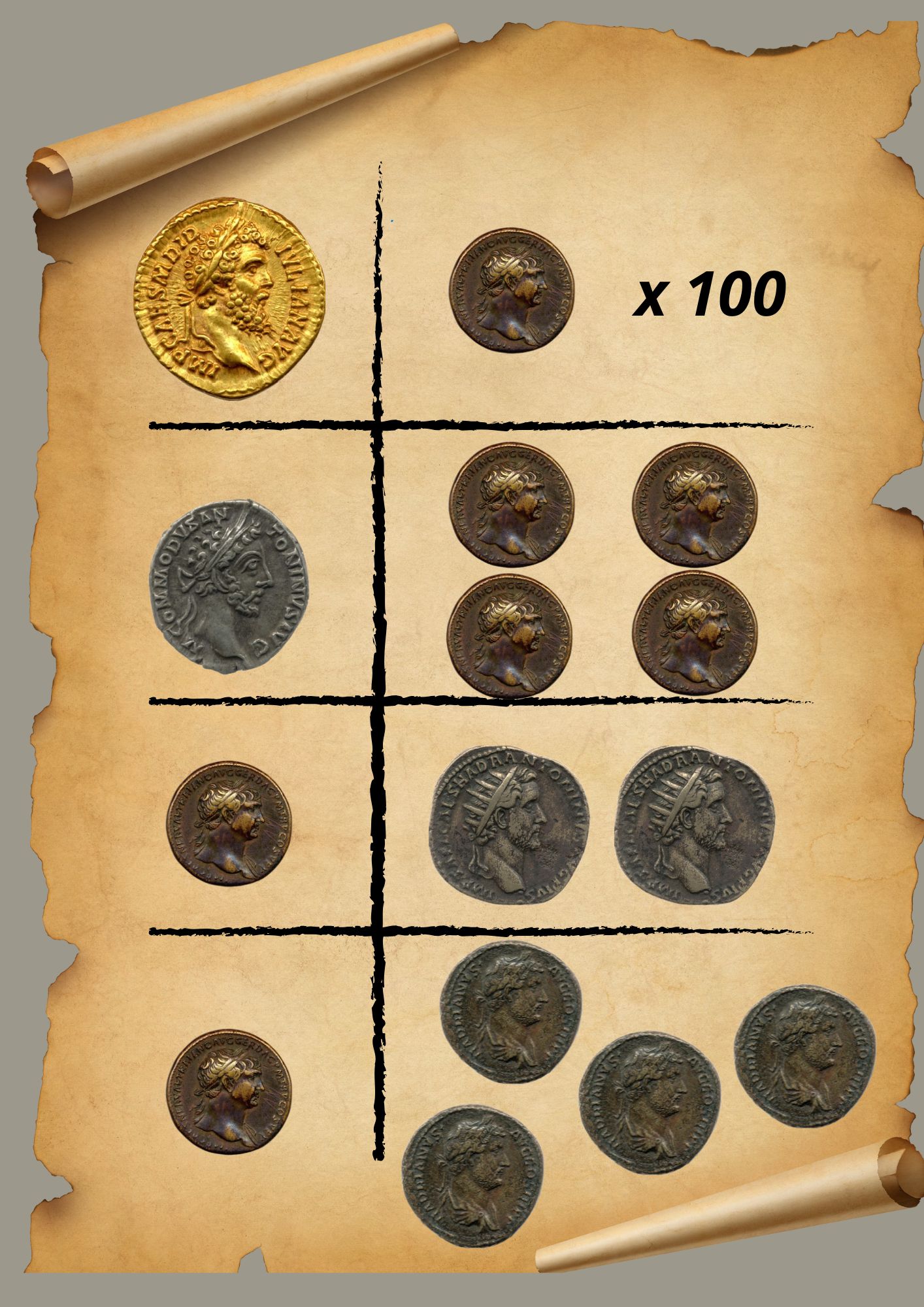 La primera tarea consiste en hallar la equivalencia entre las diferentes monedas romanas.
