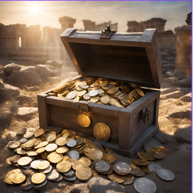 En la antigua Roma, la moneda de uso común era el sestercio. En el cofre, junto con las monedas romanas, se ha encontrado una tabla con las equivalencias de las diferentes monedas en sestercios.