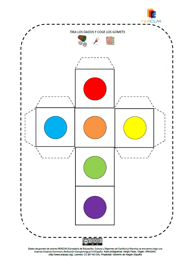 Consejería de Educación, Cultura y Deportes de Castilla-La Mancha. Dado de gomets de colores(CC BY-SA)