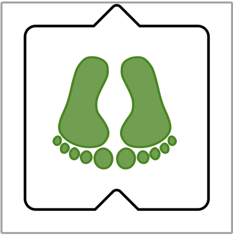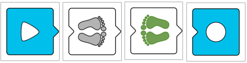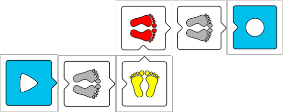 - Verbalizar el color de la huella siguiente y la dirección: "Huella gris hacia adelante" o "Huella verde hacia atrás"